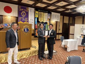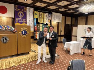 第一副会長L中江より、面会長へ記念品の贈呈。